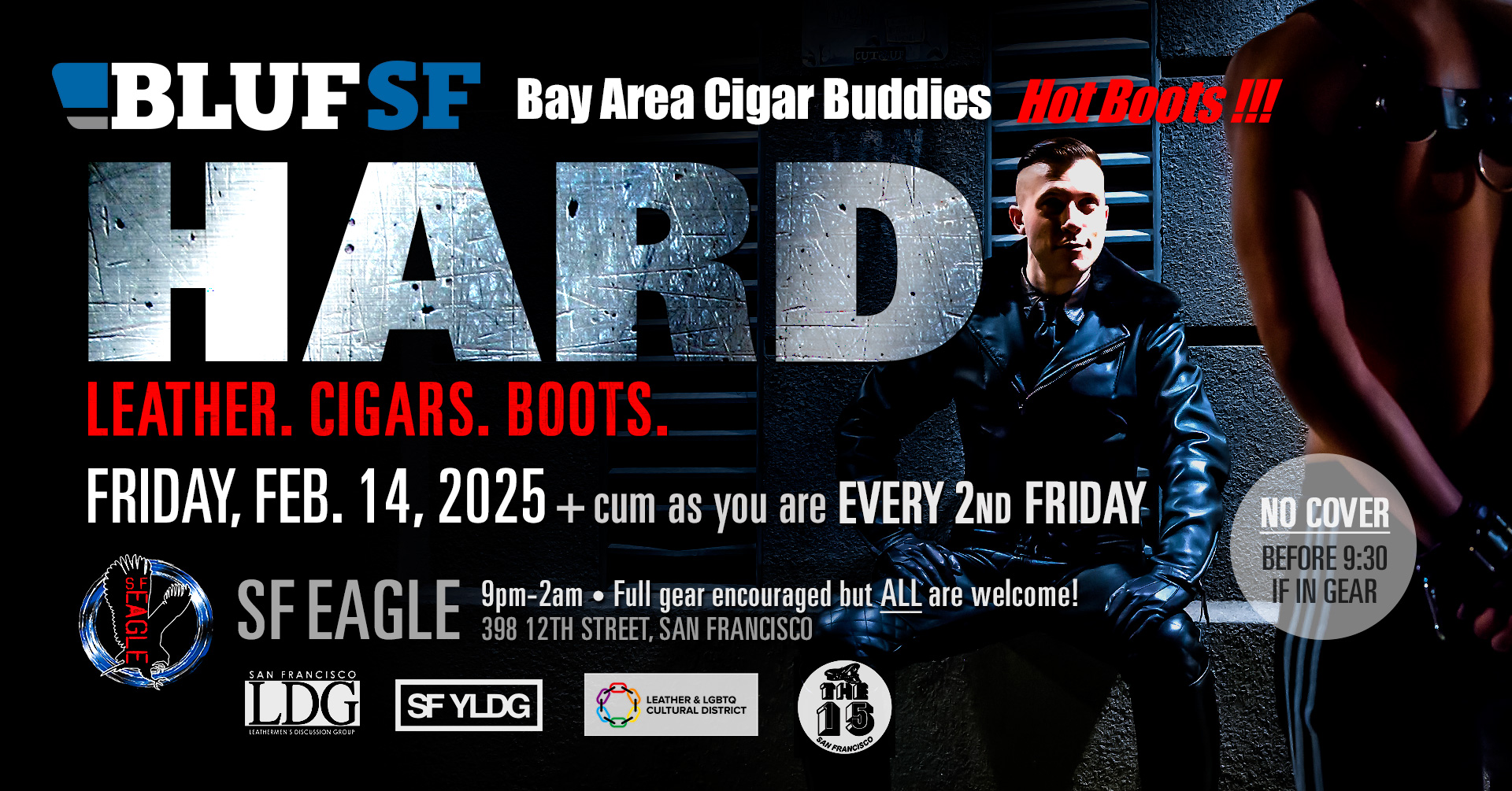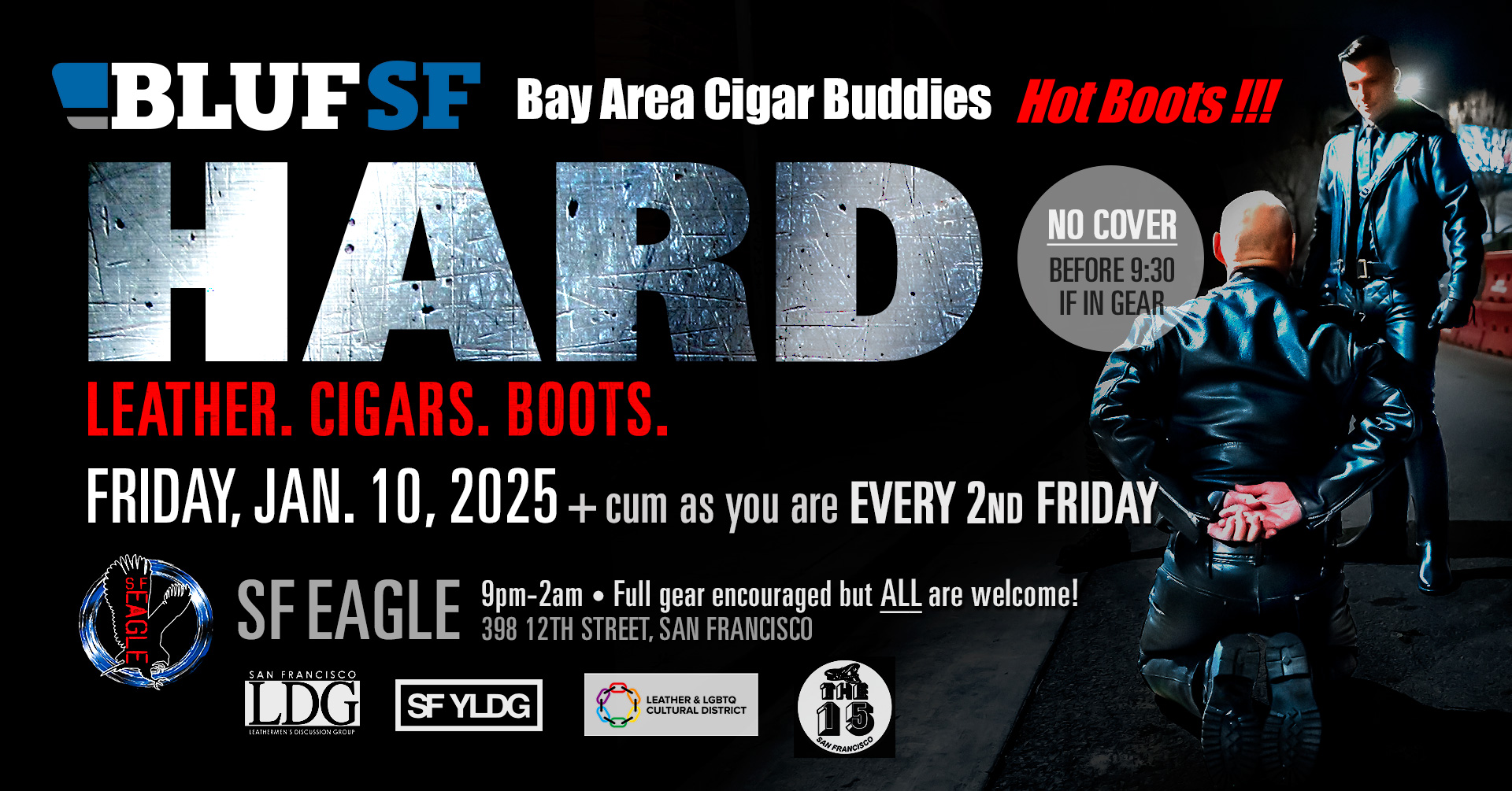 The outlook for BLUFSF is looking positive as we head into the new year. BLUFSF HARD will continue as usual on the 2nd Friday every month at the SF Eagle. Dinners beforehand will be presented and will be listed on the new BLUFSF Social page.